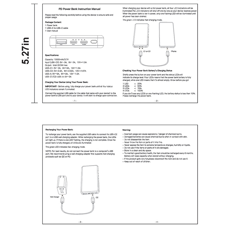 Material: Body of Power Bank - ABS